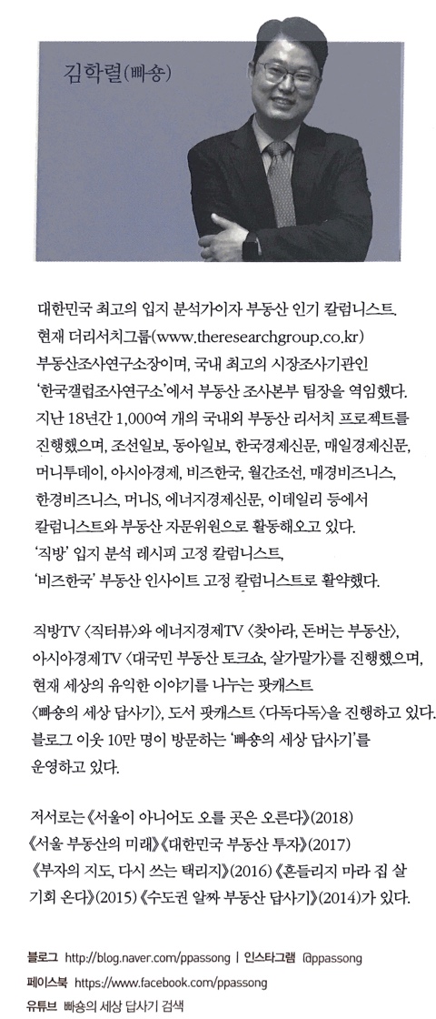부동산 관심 있으신 이웃님이라면 누구나 들어보셨을만한 재야의(?) 유명 부동산 전문가이죠. 빠숑 김학렬님의 책입니다.
