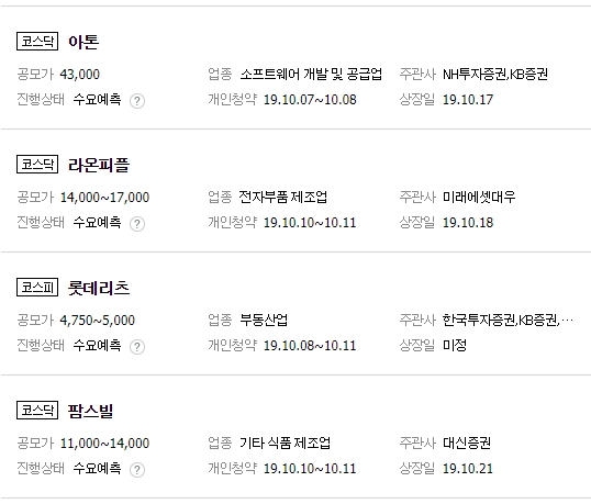 2019년 10월 공모주 일정재테크/무릎어깨_주식&펀드 2019. 10. 6. 13:26반응형
