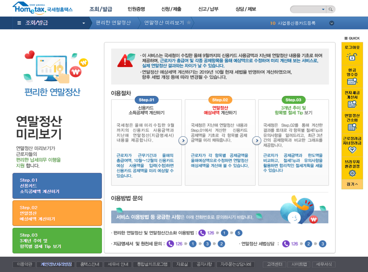 연말정산 미리보기는 3단계로 살펴볼 수 있는데요.