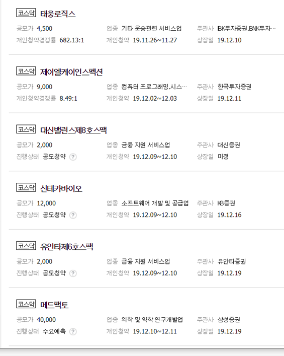 2019년 12월 공모주 청약 일정재테크/무릎어깨_주식&펀드 2019. 12. 9. 22:30반응형