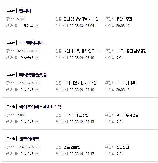 2020년 2월 공모주 일정