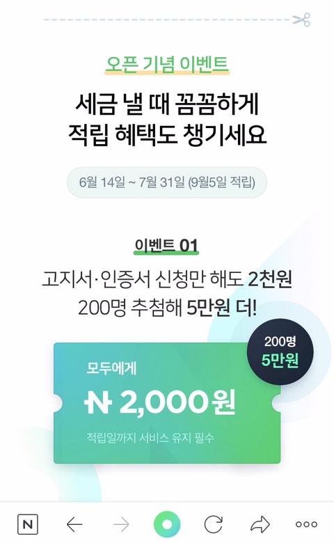7월, 재산세 납부 기간을 맞이하여 관련 포스팅을 쓰고 보니, 네이버에서도 세금 고지서 납부를 신청 후 네이버페이 통한 납부 시 적립 혜택 이벤트가 있다는 것을 알아 추가로 올려 봅니다.