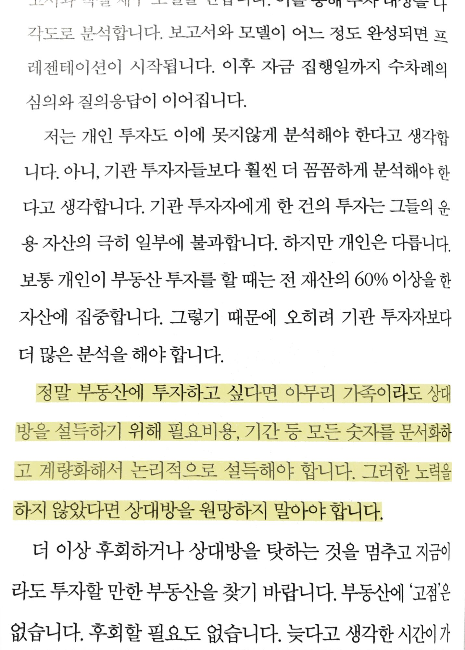 그런데 평범한 직장인이 아닌, 부동산 투자 경험이 많은 전문가 입장에서 쓴 책이라는 인상이 강했습니다. 즉, 책의 내용은 어렵지 않으나 재테크 부동산 초보 입장에서 쉽게 곧바로 실전 투자에 적용하기는 어려워 보였고 거리감을 느꼈던 것이 사실입니다.