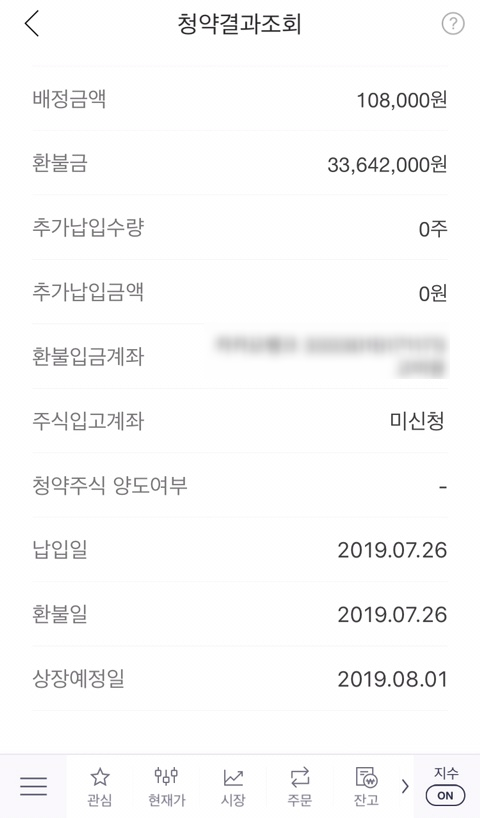 환불금 입급 알림을 받고 살펴 보니 4주가 배정되었습니다. 아쉽지만 제 경우, 공모주 투자는 마이너스 통장 활용을 극대화하며 작은 수익을 목표로 하기 때문에, 큰 욕심을 낼 수는 없겠지요.